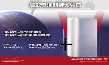 福斯特TF4N POE突破TOPCon單玻封裝難點(diǎn),CF連接膜助力HJT/TOPCon實(shí)現(xiàn)0BB! [2023-11-06]2023年金秋,19th CSPV會(huì)議在西安如期召開(kāi)。作為全球領(lǐng)先的封裝材料供應(yīng)商,福斯特針對(duì)當(dāng)下先進(jìn)電池組件的封裝挑戰(zhàn),給出了全面的解決方案。[查看詳情]