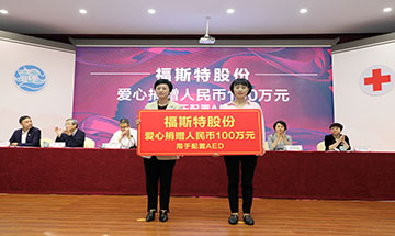 “救在身邊,守護生命” | 福斯特向臨安區紅十字會捐款100萬元! [2021-10-14][2021-10-14]2021年10月13日上午,“攜手文明,救在身邊”中央文明委基層聯系點項目景區應急救護文明實踐活動現場會在臨安區龍門秘境景區召開,福斯特向臨安區紅十字會捐款100萬元,獲杭州市紅十字會“人道博愛奉獻獎”![查看詳情]
