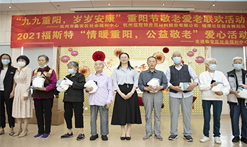 福斯特“情暖重陽,公益敬老”愛心活動走進臨安區社會福利中心 [2021-10-14][2021-10-14]2021年10月13日,福斯特“情暖重陽,公益敬老”愛心活動走進臨安區社會福利中心,近百名老人歡聚一堂,共度重陽佳節,共享美好時光,行政總監安望飛出席活動并發表講話。[查看詳情]
