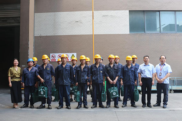 在慰問期間,錢部長一行先是查看了福斯特職工心情驛站的建設情況,隨后去到維修車間,向車間的一線員工們表示慰問,并送上了各類豐富的生活用品。他們關切地詢問員工的工作情況,提醒大家合理安排工作時間,確保身心健康,做好防暑降溫及自我保護工作。