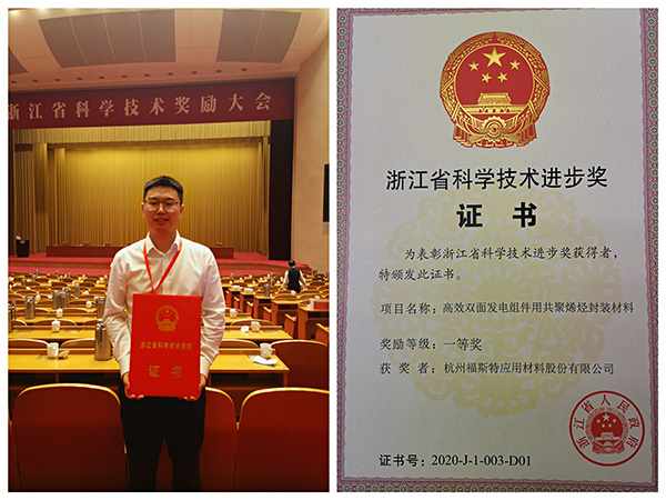 6月15日下午,浙江省科學(xué)技術(shù)獎勵大會在浙江省人民大會堂隆重舉行,由杭州福斯特應(yīng)用材料股份有限公司和浙江大學(xué)共同完成的 “高效雙面發(fā)電組件用聚烯烴封裝材料”項目榮獲浙江省科技進(jìn)步一等獎。