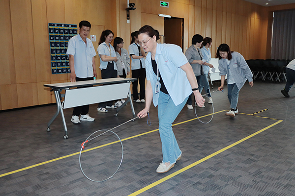 中午,福斯特工會(huì)組織開(kāi)展“童趣端午”主題文化活動(dòng),通過(guò)夾彈珠、踢毽子、轉(zhuǎn)陀螺、滾鐵環(huán)等懷舊小游戲,讓員工重溫童年的時(shí)光。每完成一個(gè)小游戲任務(wù),可以獲得一枚印章,集齊四枚就能兌換一份小禮品。員工們玩的不亦樂(lè)乎,紛紛表示既有趣又溫馨,仿佛回到了童年。