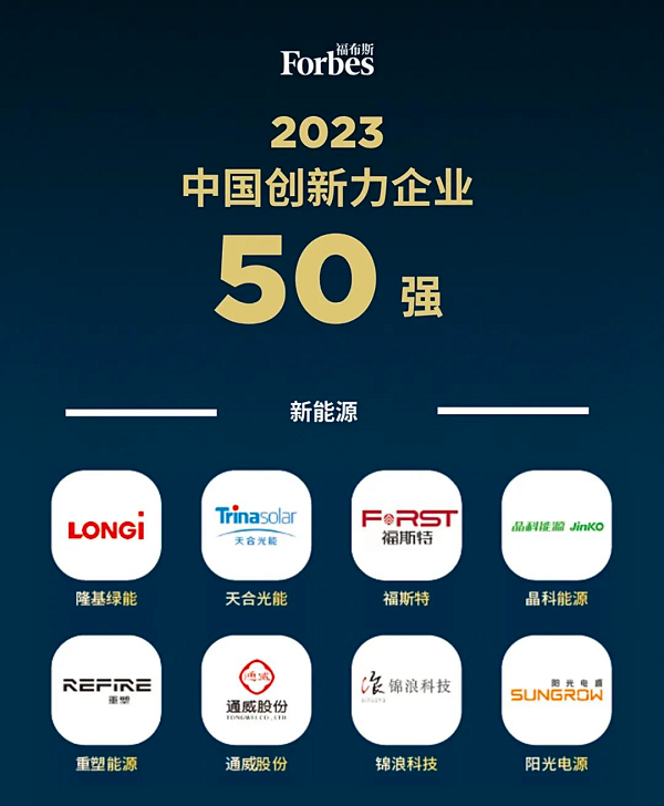 據《福布斯》指出,從今年創新力50強企業的行業分布上看,光伏產業部分相比去年減少了3個席位,但他們的研發節奏并沒有被打亂,從同步推出的“新能源科創圖譜”中能夠看出,頭部光伏公司新增專利數量還在持續增加。