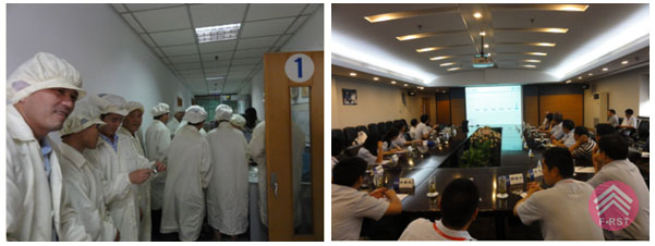 東方通信城接待講解人員首先給大家介紹了東方通信城的規(guī)模、布局及特點,接著大家參觀了東信A座的生產(chǎn)線。在生產(chǎn)線參觀時,東方通信沈總詳細地介紹了生產(chǎn)的工藝流程、現(xiàn)場管理、質(zhì)量控制及物流管理等情況……生產(chǎn)現(xiàn)場的管理看板、生產(chǎn)看板、生產(chǎn)流程等細節(jié)無不體現(xiàn)著其現(xiàn)代化的管理水平。隨后大家與東方通信的蔡總、沈總等業(yè)務(wù)領(lǐng)導(dǎo)在會議室進行交流互動,分別針對生產(chǎn)管理和物流管理等問題,進行了一系列的探討和經(jīng)驗交流。東方通信在生產(chǎn)管理的分工、6S推行經(jīng)驗、QC管理小組、物料管理等方面的經(jīng)驗值得我們學(xué)習(xí)和借鑒。