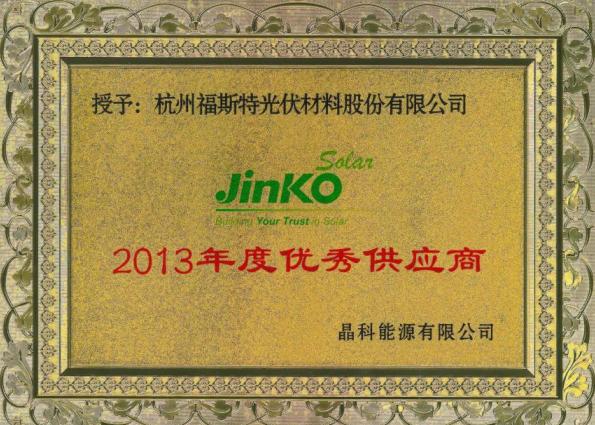 福斯特被晶科能源評為“2013年度優秀供應商”