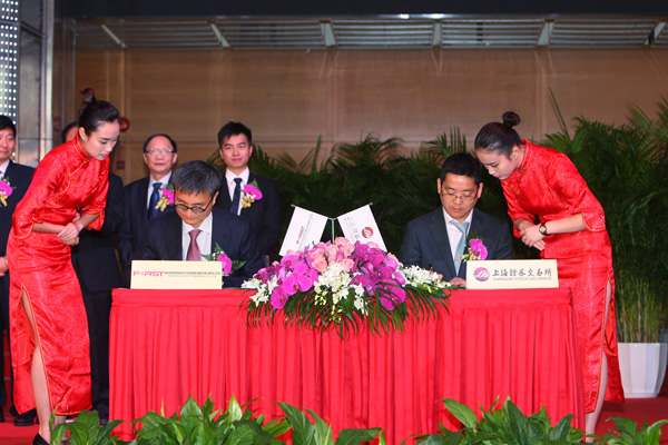 上海證券交易所總經理助理夏建亭與福斯特董事長林建華簽署《證券上市協議》