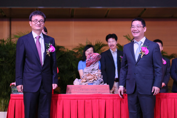 上海證券交易所總經理助理夏建亭與福斯特董事長林建華互贈紀念品