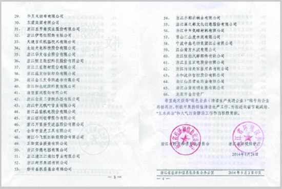 近日,浙江省經濟和信息化委員會、浙江省環境保護廳下發《關于公布2013年度浙江省綠色企業(清潔生產先進企業)名單的通知》(浙經信資源〔2014〕408號)。