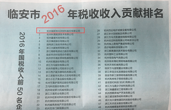 2016年,全市上下“干”字當(dāng)頭、砥礪奮進(jìn)。在市工信經(jīng)濟(jì)良好發(fā)展的環(huán)境下,福斯特企業(yè)整體實(shí)力實(shí)現(xiàn)了穩(wěn)步提升。公司主導(dǎo)產(chǎn)品EVA膠膜持續(xù)保持全球市場(chǎng)50%的占有率,產(chǎn)品與國內(nèi)同行相比,具備先發(fā)優(yōu)勢(shì)、質(zhì)量?jī)?yōu)勢(shì)、技術(shù)優(yōu)勢(shì)和品牌優(yōu)勢(shì);與國外同行相比,具備本土化優(yōu)勢(shì)和規(guī)模化優(yōu)勢(shì)。