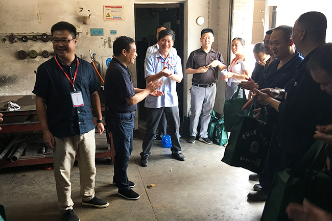 在生產(chǎn)車間,吳云海向在高溫環(huán)境下奮戰(zhàn)的職工表示慰問(wèn),并為他們送上了生活用品。他關(guān)切地詢問(wèn)工人的工作條件、作息時(shí)間,叮囑他們注意身體,勞逸結(jié)合,高度重視安全生產(chǎn)。