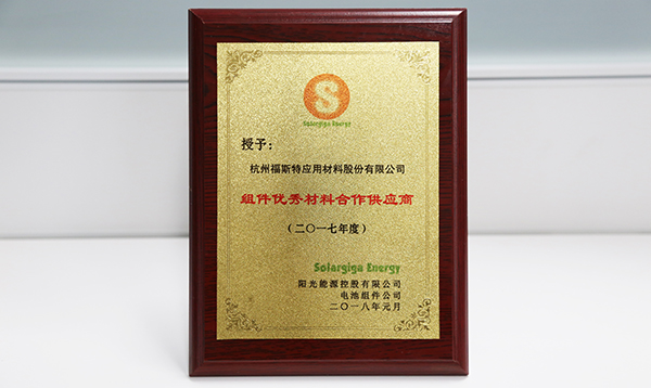 福斯特榮獲錦州陽光能源2017年度組件優(yōu)秀材料合作供應(yīng)商獎(jiǎng)