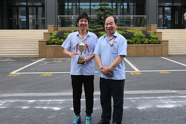 福斯特工會主席胡偉民為冠軍隊伍——工會四組(發(fā)電公司代表隊)頒獎