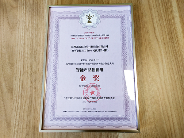 12月12日,2019“市長杯”杭州高價值知識產(chǎn)權(quán)創(chuàng)新創(chuàng)意大賽決賽在杭州成功舉行,福斯特《高可靠性PID free 光伏封裝材料》項目喜獲決賽金獎。