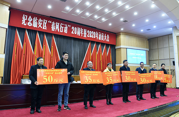 2020年1月13日下午,紀念臨安區“春風行動”20周年暨2020年動員大會召開。福斯特現場捐款50萬元,并榮獲“春風行動愛心企業”的榮譽。