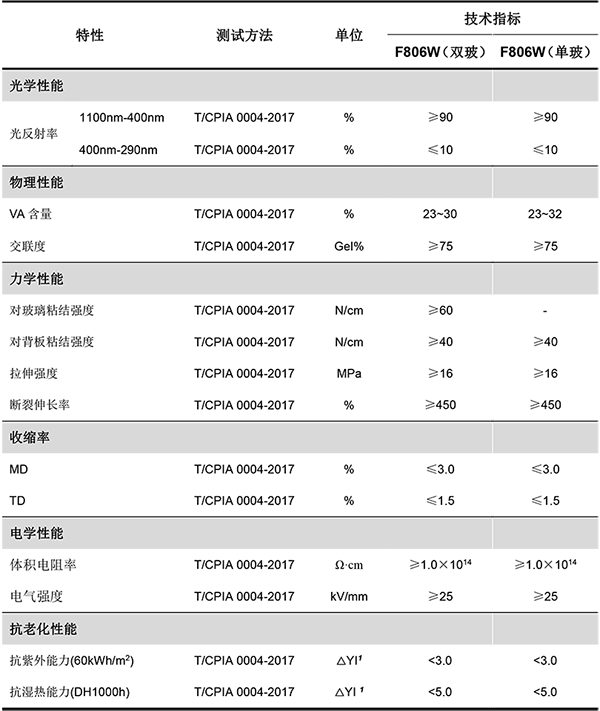 F·RST  F806W 白色EVA膠膜具有下列主要特性:
